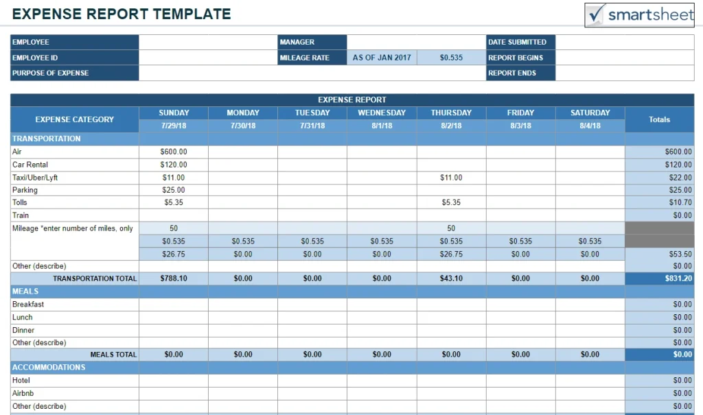 Having a template developed can greatly help simplify an expense report’s writing process. Generally, a well-organized template has parts for: